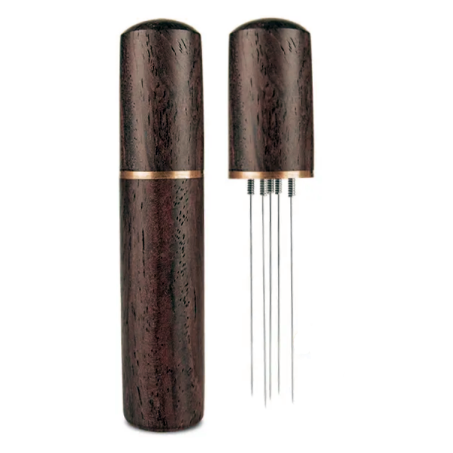 Este removedor de grumos es un herramienta que viene a mejorar bastante la experiencia en tu espresso, en especial si no cuentas con un molino de alta gama, eliminar grumos y distribuir homogéneamente es un factor con alta relevancia al momento de erogar un espresso. El agitador de café se utiliza para distribuir uniformemente el café molido en el portafiltro antes de la extracción.