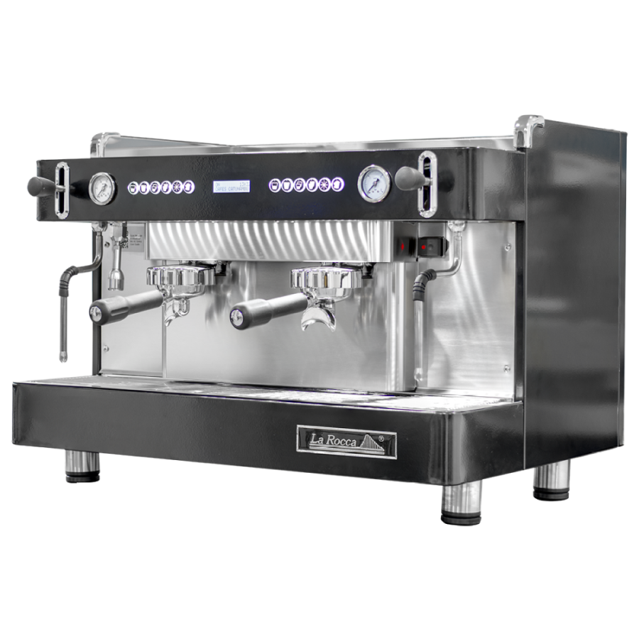 La cafetera La Rocca Venezia destaca por altamente competitiva en términos de prestaciones y calidad, es un equipo volumétrico con funciones que ayudan mucho al día a día cómo encendido y apagado programable. Dentro del panel puedes acceder a configuraciones de temperatura por PID, encendidos y apagados, nombre de tu local y monitorizar el uso. Las luces de barista te permiten una calibración con buen detalle de observación en cómo cae la espuma incluso si el local todavía está cerrado, permiten desestresar la vista con tantos cambios de enfoque y mantener una superficie más limpia.