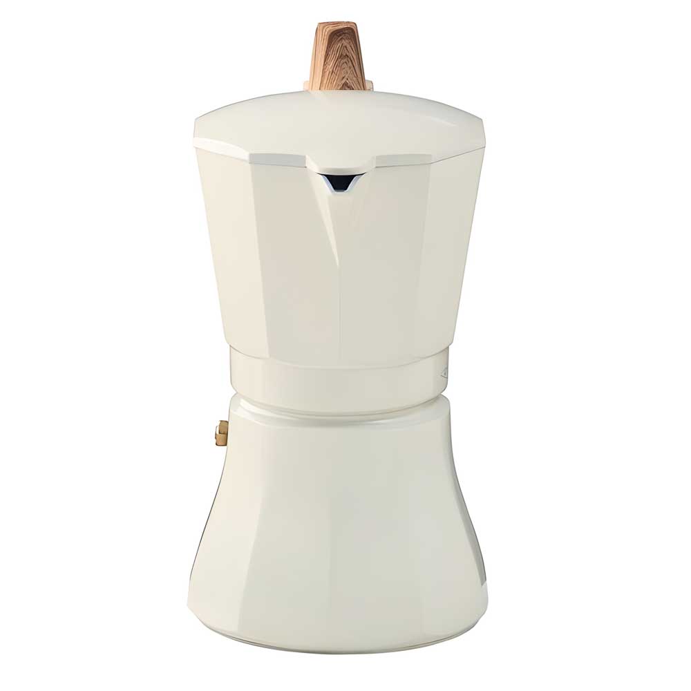 Está hecha de aluminio apta para todo tipo de cocinas incluida la inducción, debido a que el diámetro de la base es más amplia para que las placas de inducción detecten la cafetera.