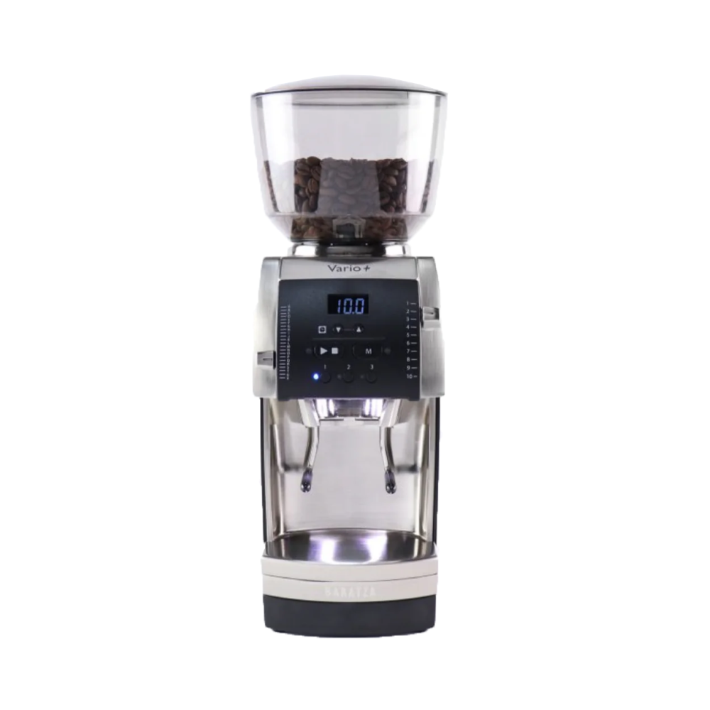 El Baratza Vario+ se presenta como una excelente opción para los amantes del café que buscan una molienda precisa y consistente para una amplia variedad de métodos, incluyendo espresso. Sus muelas planas de cerámica de 54mm aseguran una molienda uniforme y duradera. Con 220 pasos de ajuste macro y micro, ofrece una personalización excepcional del tamaño de molido. La pantalla LED con tres preajustes programables facilita su uso, y detalles como la tolva bloqueable y las luces LED añaden comodidad. Su motor potente y silencioso con protección térmica garantiza un rendimiento constante. Si buscas un molino versátil, preciso y duradero para explorar todas tus pasiones cafeteras, el Baratza Vario+ es una elección sólida. Recuerda consultar la garantía para uso con café de especialidad.