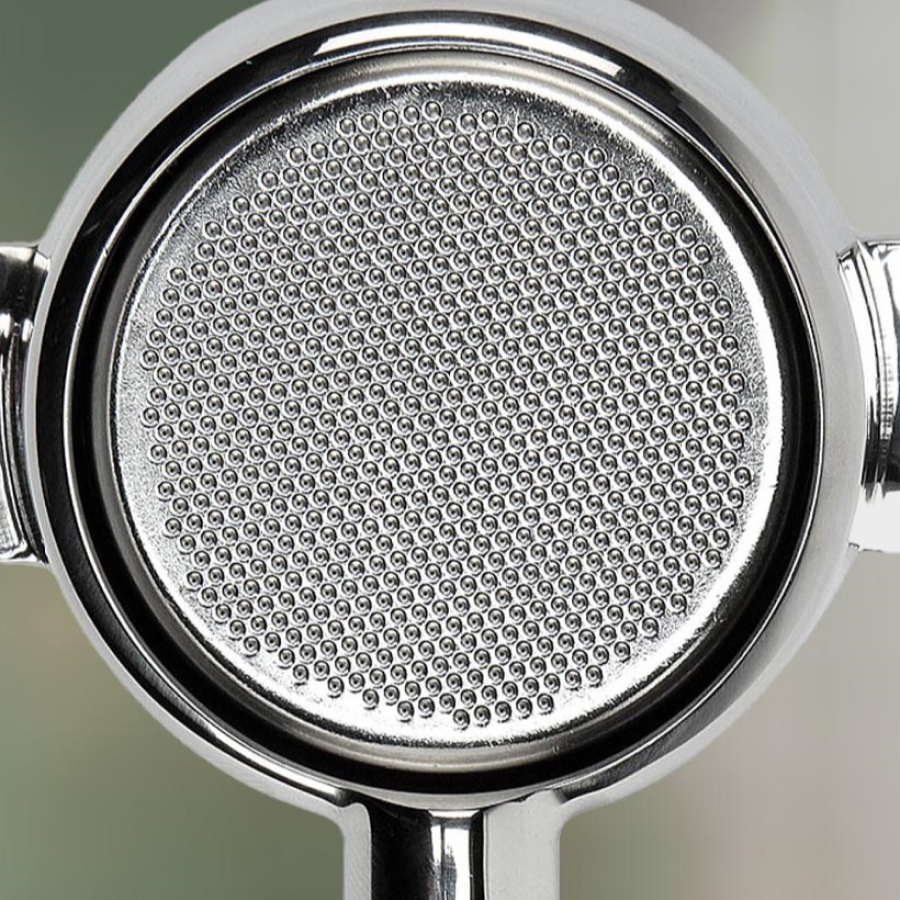 • Control de extracción superior: Permite la observación directa del flujo de espresso, facilitando la identificación y corrección de la molienda y la técnica de compactación.